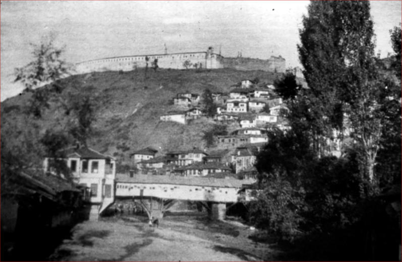 Kosovo. Prizren. View of Prizren with the old covered bridge and fortress