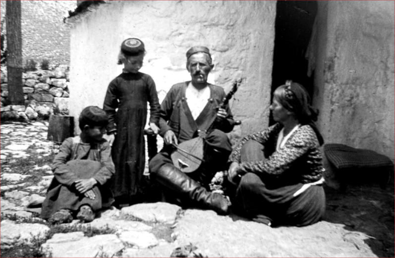 Montenegro. Njeguši. Edith Durham’s guide Krsto Pejović playing a gusle (Alb. lahuta) at