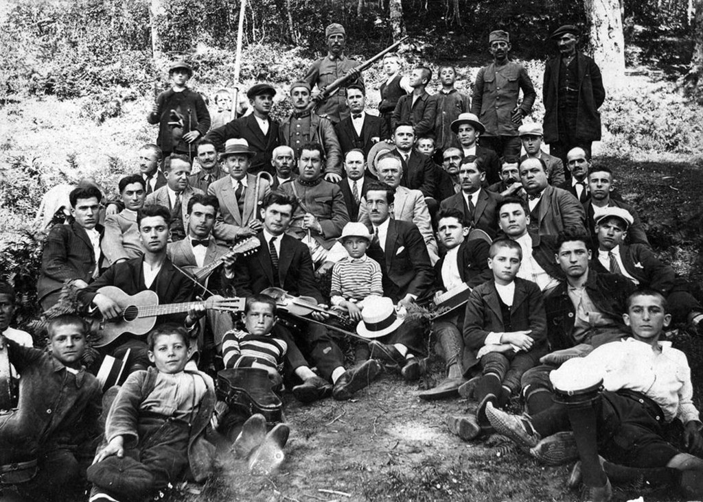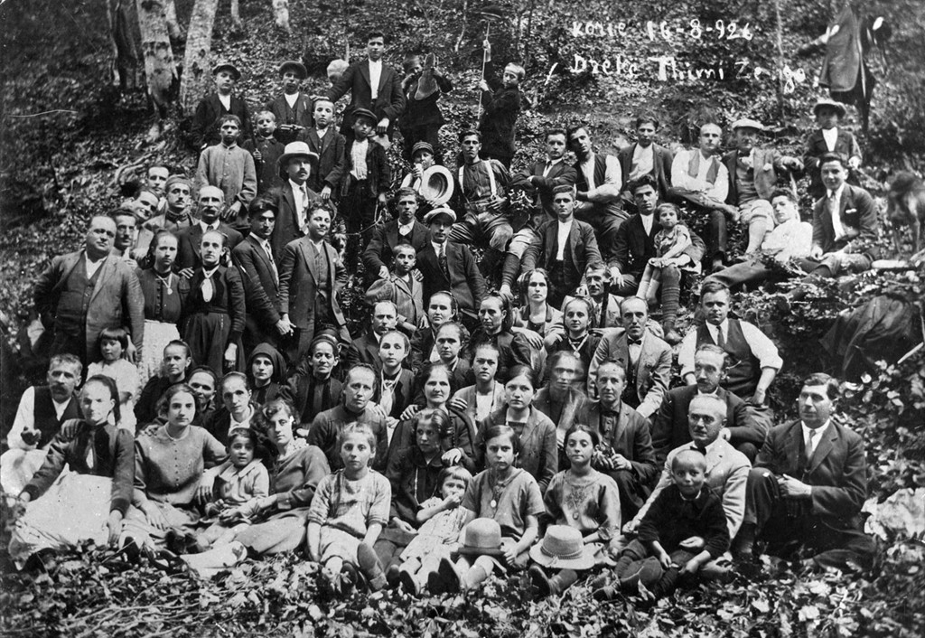 Thimi Raci (1886-1966) was an Albanian photographer who was active in the 1920s and 1930s in his native village of Dardha, situated in the mountains of southeastern Albania near Korça. He was born in Dardha where he attended a Greek-language elementary school. At the age of fifteen, he emigrated to Romania in search of work, as did many young Albanians from that region at the time. On his return to Albania, he worked as a tinsmith in Korça before moving back to his village. He learned the art of photography from Pero Kaçauni who emigrated to the United States in 1910 and left Thimi his camera and material. By 1911 there was a shop in Dardha bearing the sign "Thimi Ratsi - Tinsmith and Photographer". Raci's photos are conventional for the most part as one would expect - mostly family portraits, weddings, children and social events in and around the village. However, if we bear in mind that the only other photographers in Albania were in the towns of Shkodra and Korça, one cannot fail to be impressed by his spirit of enterprise. Surprising for the outside observer is the high level of prosperity, social progress and westernization that one encounters here in the village of Dardha when one realizes how poor, backward and "oriental" the rest of the country was at the time. Thanks go to Adriana Stefani Kuruni and Vaskë Bruko, as well as to Albanian photography expert Qerim Vrioni for making this photo collection available.
